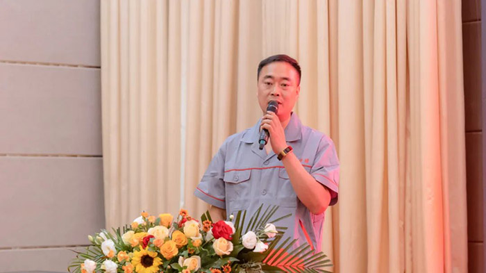 活動伊始,榮盛科技集團董事長楚科奇首先發表了激情洋溢的講話。楚總指出,榮盛新威自掛牌以來,引起同行們的高度關注,特別是去年7.20洪水后,榮盛新威在宋總的領導下,沒有在困難面前低頭,而是越挫越勇,夜以繼日奮戰在一線,目前以嶄新的面貌呈現在同行面前。他衷心地感謝了宋總的努力與付出,并號召大家要學習宋總「以奮斗者的姿態砥礪前行,以追趕者的執著奮勇當先,以拼搏者的堅毅擔當實干」的企業家精神。