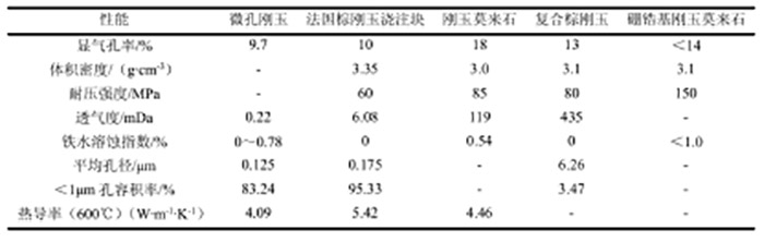 表3:爐缸和爐底用典型陶瓷材料的性能