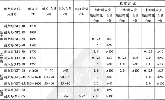 常用的耐火泥有粘土質(zhì)、高鋁質(zhì)、硅質(zhì)、鎂質(zhì)耐火泥等。在砌筑粘土耐火磚時,應(yīng)用粘土質(zhì)耐火泥。粘土質(zhì)耐火泥是由粘土質(zhì)熟料和結(jié)合粘土組成,其成分見下圖。