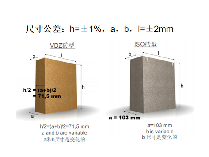 VDZ標準采用更詳細的分類,包括不同類型的耐火磚,如標準磚、